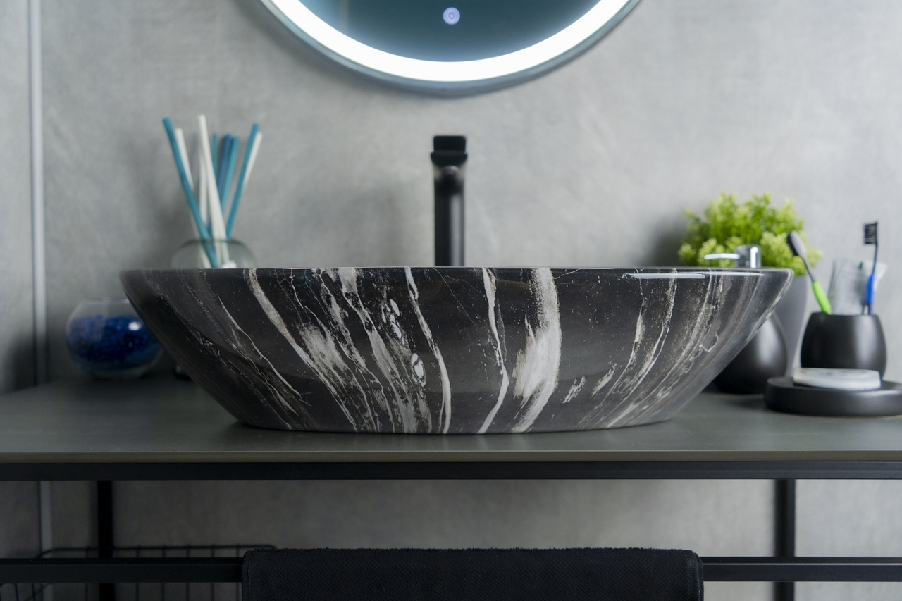 Creativo – это нестандартные формы, рожденные в Испании, сочетаются с европейскими стандартами качества, превращая каждую раковину в уникальное дизайнерское решение. GiD Mnc206 — сочетание элегантного дизайна и практичности для вашей ванной комнаты. Изготовлена из мелкопористой керамики с глянцевой черной поверхностью, имитирующей текстуру натурального камня, она придаст интерьеру свежесть и утонченность. Нестандартная треугольная форма обеспечивает оптимальное пространство для комфортного использования. Отсутствие отверстия под смеситель подчеркивает минималистичный стиль, а накладной способ монтажа на столешницу облегчает установку и позволяет создать современный облик ванной комнаты.