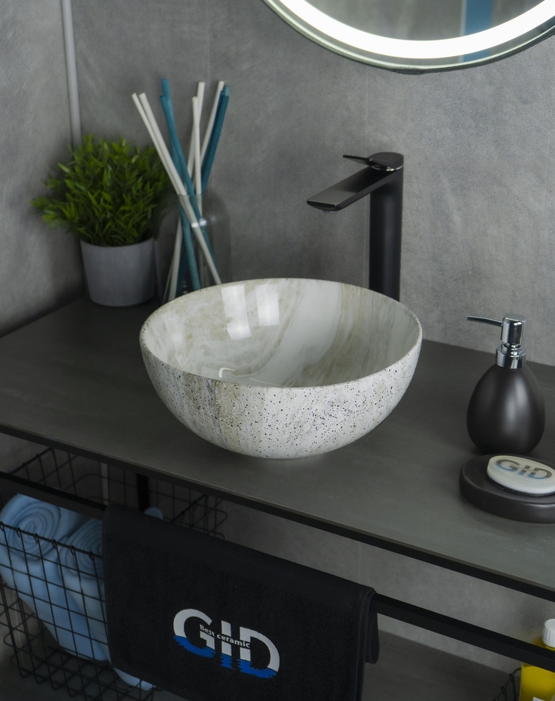 Раковины серии Esfera с круглой чашей — это эталон европейских стандартов и испанского мастерства. Раковина накладная Gid Mnc487 — это стильная модель, изготовленная из высококачественной керамики. Она имеет круглую форму, что делает её практичным решением для современных ванных комнат. Дизайн раковины имитирует глянцевую поверхность натурального камня, придавая интерьеру элегантность и утончённость. Раковина устанавливается накладным способом на столешницу, что подчёркивает её современный стиль. Раковина предназначена для бытового использования и гармонично впишется в любой интерьер ванной комнаты.