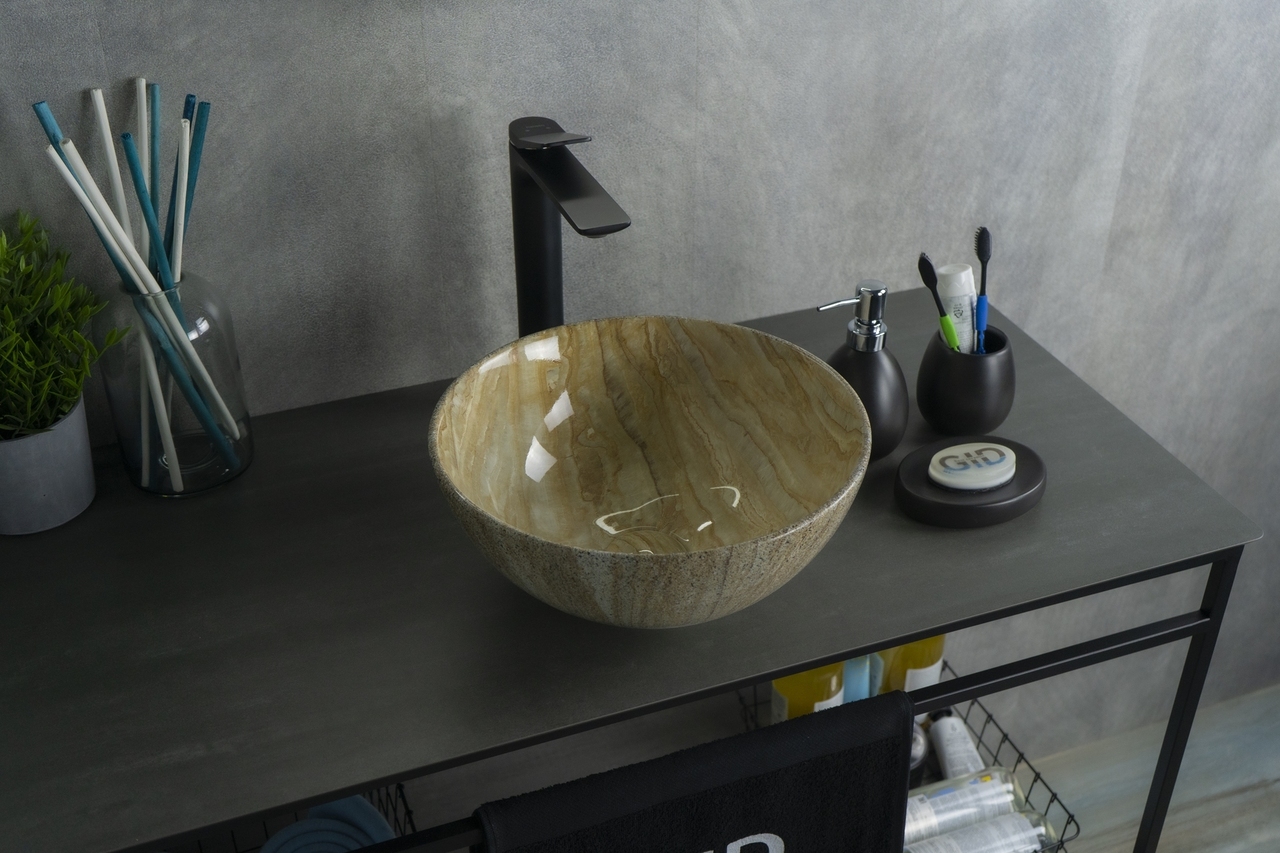 Раковины серии Esfera с круглой чашей — это эталон европейских стандартов и испанского мастерства. Раковина накладная GID Mnc488 — это стильная модель, изготовленная из высококачественной керамики. Она имеет круглую форму, что делает её практичным решением для современных ванных комнат. Дизайн раковины имитирует глянцевую поверхность натурального камня, придавая интерьеру элегантность и утончённость. Раковина устанавливается накладным способом на столешницу, что подчёркивает её современный стиль. Благодаря отсутствию отверстия под смеситель раковина позволяет реализовать различные дизайнерские решения по размещению смесителя. Раковина предназначена для бытового использования и гармонично впишется в любой интерьер ванной комнаты.