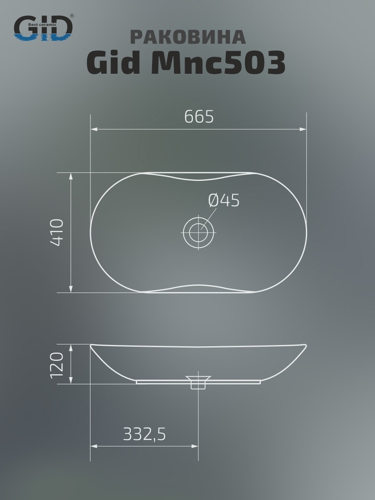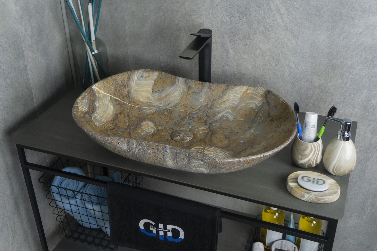 Накладная раковина, донный клапан "Хром" или в цвет раковины (по наличию) Gid Раковина Gid Mnc503 54440 накладная под камень глянцевая 66.5x41x12 - 54440