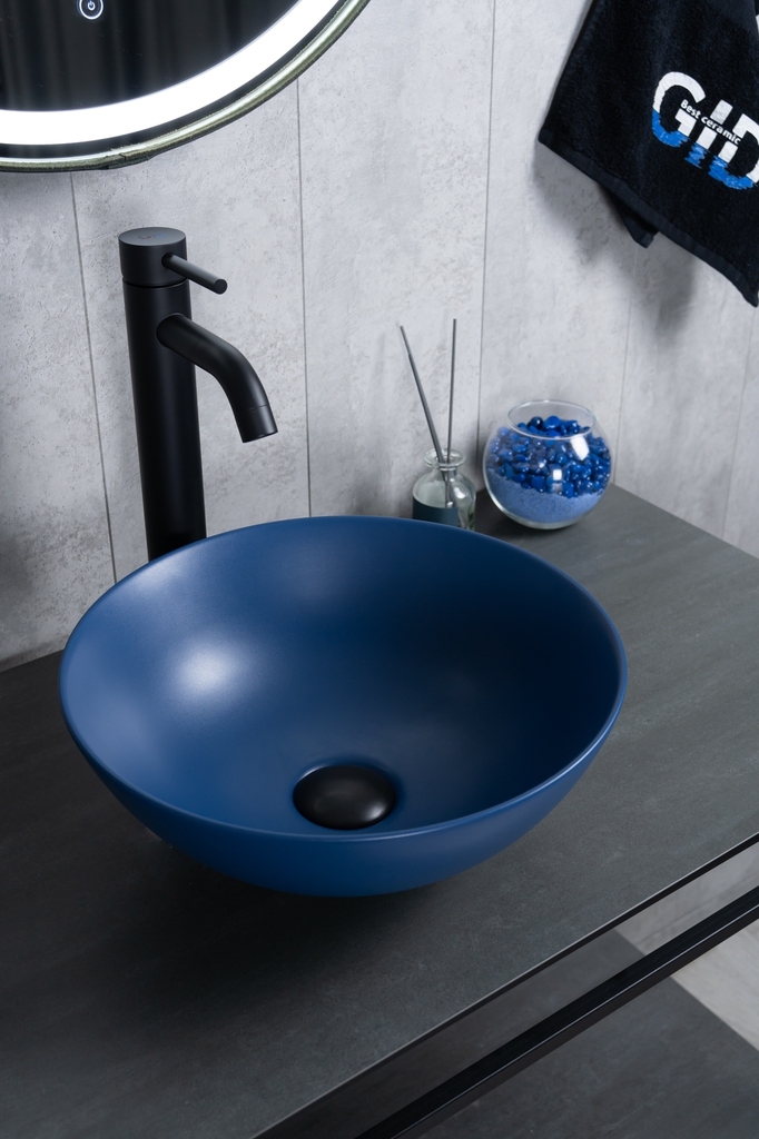 Раковины серии Esfera с круглой чашей — это эталон европейских стандартов и испанского мастерства. Раковина накладная GID 9081bum — уникальная модель в эффектном синем цвете с матовым покрытием, созданная для яркого и современного интерьера. Её круглая форма гармонично дополняет пространство, создавая акцентный элемент в ванной комнате. Мелкопористая керамика отличает раковину долговечностью, устойчивостью к загрязнениям и простотой в уходе. Благодаря отсутствию отверстия под смеситель раковина позволяет реализовать различные дизайнерские решения по размещению смесителя. Накладной монтаж обеспечивает лёгкость установки и сохраняет максимум пространства на столешнице.