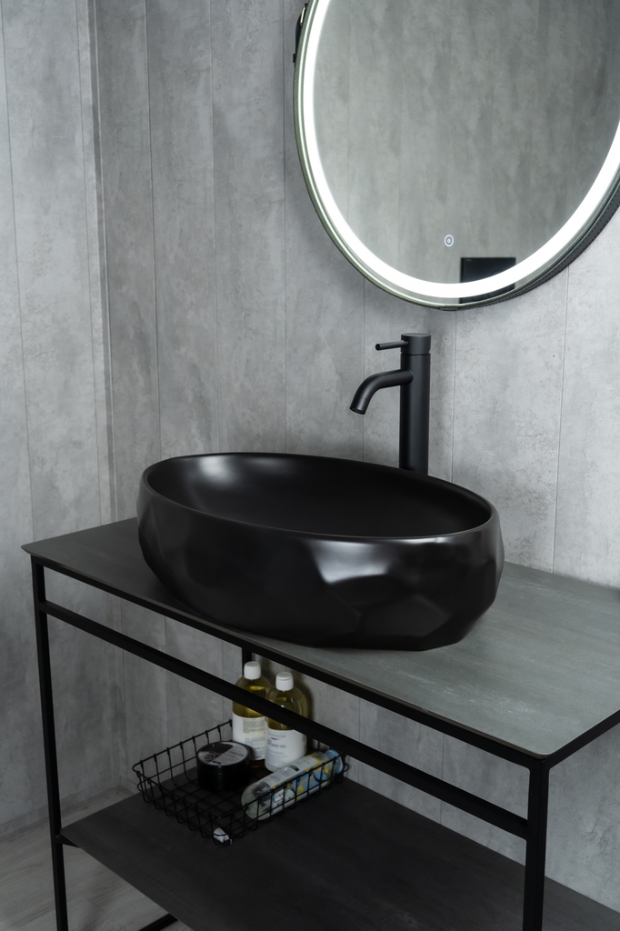 Серия Lago овальной формы — это испанское качество, соответствующее современным европейским требованиям. Накладная раковина GiD BM9030wx— идеальный выбор для тех, кто ценит стиль и минимализм в интерьере. Матовая черная керамика придаст вашей ванной комнате современный и неповторимый акцент. Овальная форма создает ощущение легкости и гармонии, визуально расширяя пространство. Накладная конструкция не только упрощает монтаж, но и позволяет сэкономить место на столешнице. Это универсальное и востребованное решение для современных проектов.