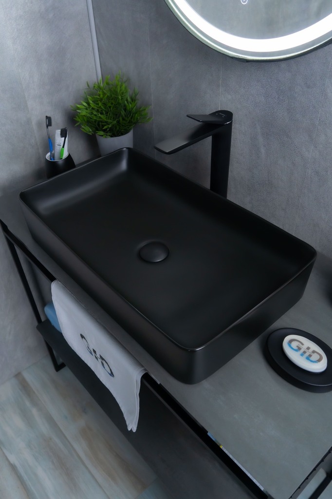 Серия Geometrico с прямоугольной формой: стиль и практичность с испанским качеством и европейскими стандартами. Накладная раковина GiD BM9396 — идеальный выбор для тех, кто ценит стиль и минимализм в интерьере. Матовая черная керамика придаст вашей ванной комнате современный и неповторимый акцент. Прямоугольная форма создает ощущение легкости и гармонии, визуально расширяя пространство. Накладная конструкция не только упрощает монтаж, но и позволяет сэкономить место на столешнице. Это универсальное и востребованное решение для современных проектов.