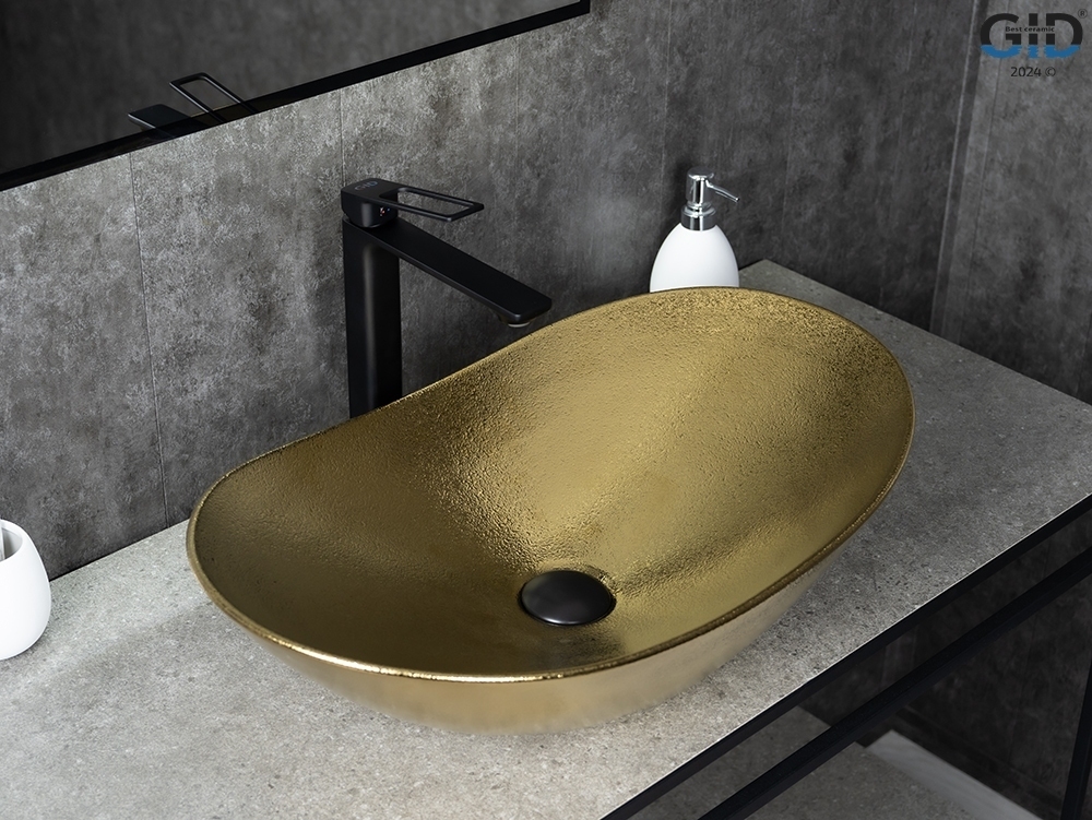 Серия Lago овальной формы — это испанское качество, соответствующее современным европейским требованиям. Раковина GiD Gd9811— элегантная накладная модель, изготовленная из высококачественной мелкопористой керамики с роскошным золотистым покрытием. Её овальная форма и изящный цвет придают интерьеру ванной комнаты утончённость и стиль, обеспечивая гибкость в дизайне. Накладной монтаж упрощает установку и дает дополнительное пространство на столешнице.