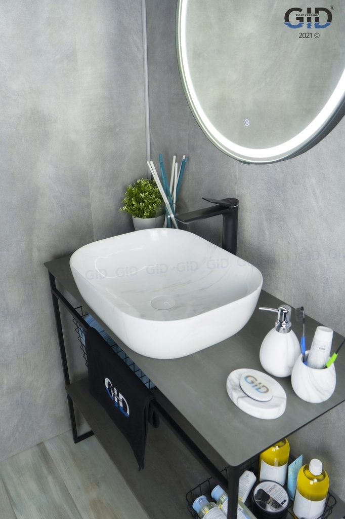 Серия Geometrico с прямоугольной формой: стиль и практичность с испанским качеством и европейскими стандартами. Раковина накладная GiD K397D9— элегантная модель прямоугольной формы, изготовленная из высококачественной керамики с глянцевой поверхностью в белом цвете, создающей эффект натурального камня. Её строгий и современный дизайн идеально подойдёт для ванных комнат в минималистичном или современном стиле. Модель не имеет отверстия под смеситель, что позволяет использовать различные варианты настенных или встраиваемых смесителей, предоставляя свободу в дизайне интерьера. Раковина предназначена для установки на столешницу, подчёркивая стильный и функциональный интерьер ванной комнаты.