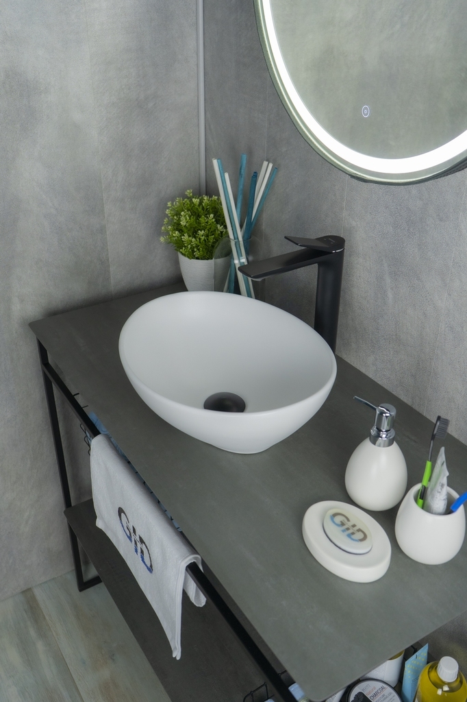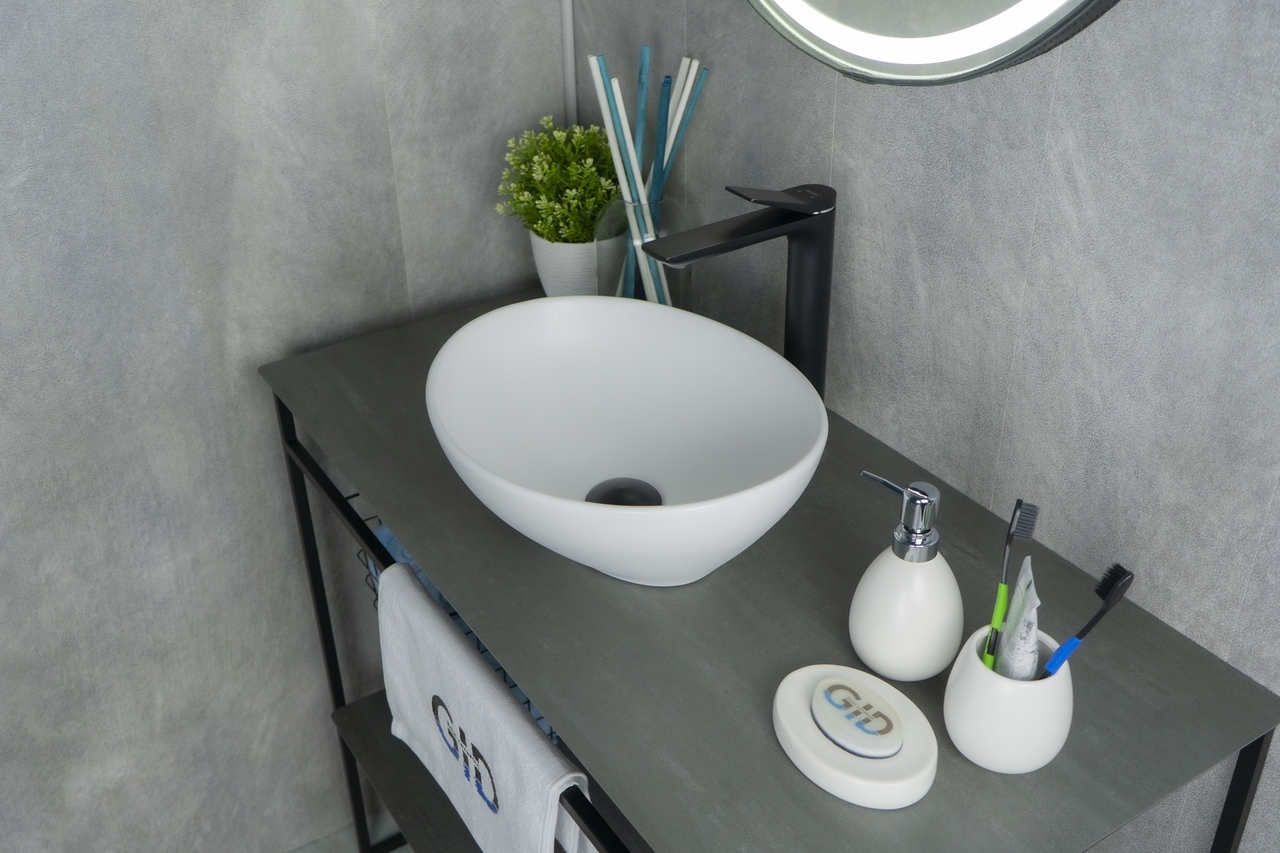 Серия Lago овальной формы — это испанское качество, соответствующее современным европейским требованиям. Накладная раковина GiD N900 — это изысканная модель, созданная для тех, кто ценит стиль и функциональность. Ее овальная форма с утонченными очертаниями придает интерьеру ванной комнаты легкость и гармоничность. Благодаря накладному монтажу раковина оптимально использует пространство столешницы, обеспечивая дополнительное место для аксессуаров. Раковина не имеет отверстия под смеситель и переливной системы, что подчеркивает ее минималистичный дизайн.