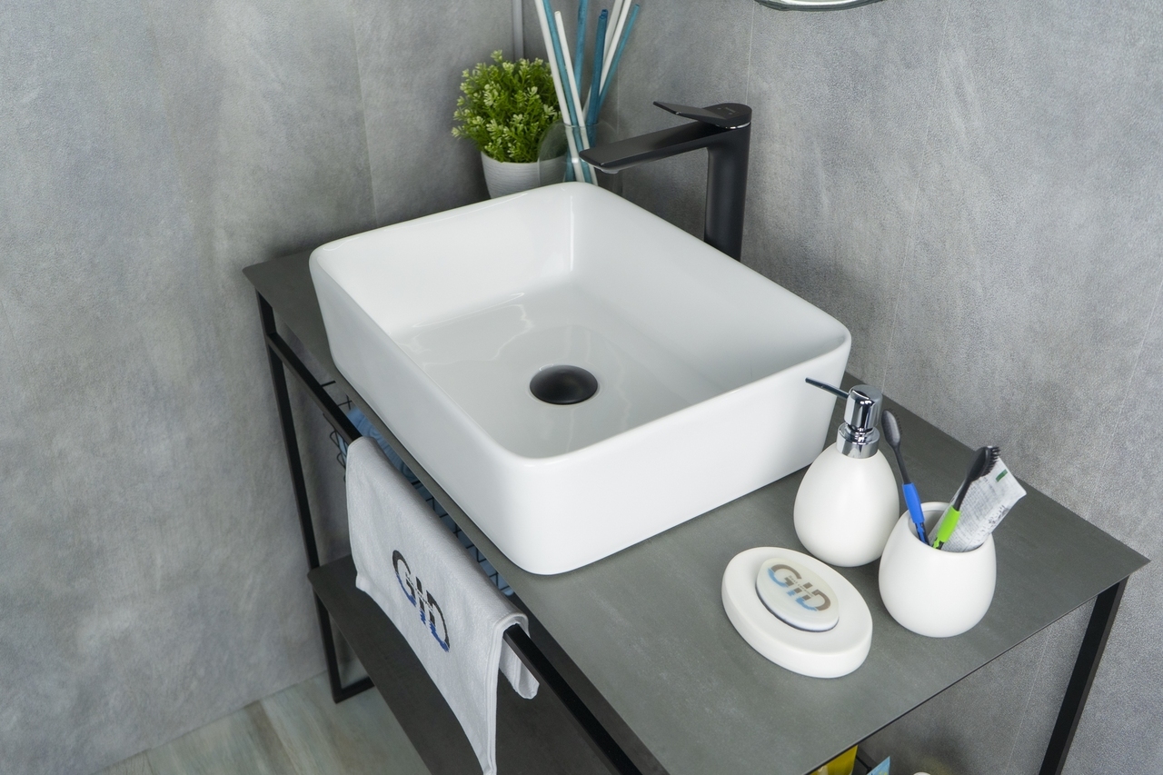 Серия Geometrico с прямоугольной формой: стиль и практичность с испанским качеством и европейскими стандартами. Накладная раковина GiD N9103 без отверстия под смеситель, изготовлена из мелкопористой керамики в белом глянцевом цвете. Гладкое стекловидное покрытие позволяет раковине быть устойчивой к загрязнениям. Прямоугольная форма и компактные размеры обеспечивают комфортное использование и легкую установку.