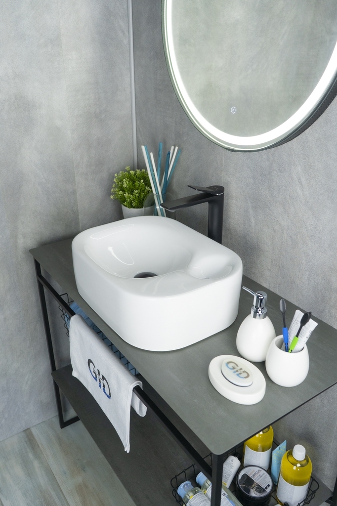 Серия Geometrico с прямоугольной формой: стиль и практичность с испанским качеством и европейскими стандартами. Накладная раковина GiD N9266 без отверстия под смеситель, изготовлена из мелкопористой керамики в белом глянцевом цвете. Гладкое стекловидное покрытие позволяет раковине быть устойчивой к загрязнениям. Прямоугольная форма и компактные размеры обеспечивают комфортное использование и легкую установку.