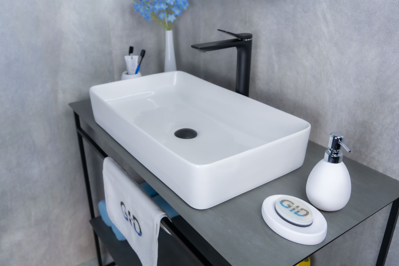 Серия Geometrico с прямоугольной формой: стиль и практичность с испанским качеством и европейскими стандартами. Накладная раковина GiD N9396 — сочетание элегантного дизайна и практичности для вашей ванной комнаты. Изготовлена из мелкопористой керамики с белым глянцевым покрытием, она придаст интерьеру свежесть и утонченность. Прямоугольная форма обеспечивает оптимальное пространство для комфортного использования. Отсутствие отверстия под смеситель подчеркивает минималистичный стиль, а накладной способ монтажа на столешницу облегчает установку и позволяет создать современный облик ванной комнаты.