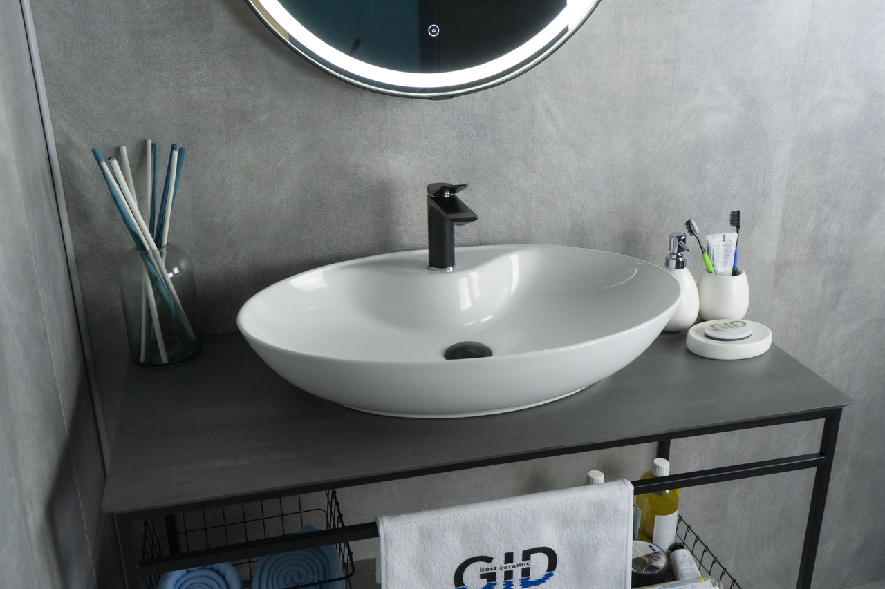 Серия Lago овальной формы — это испанское качество, соответствующее современным европейским требованиям. Раковина накладная GiD N9438 - это стильная модель, выполненная из высококачественной мелкопористой керамики с белым глянцевым покрытием, что обеспечивает долговечность и легкость в уходе. Овальная форма придает ей современный и элегантный вид, а эргономичная чаша удобна для повседневного использования. Накладная конструкция позволяет легко установить раковину на столешнице, предоставляя дополнительное пространство вокруг. Оснащена отверстием под смеситель, что делает её удобным выбором для современной ванной комнаты.