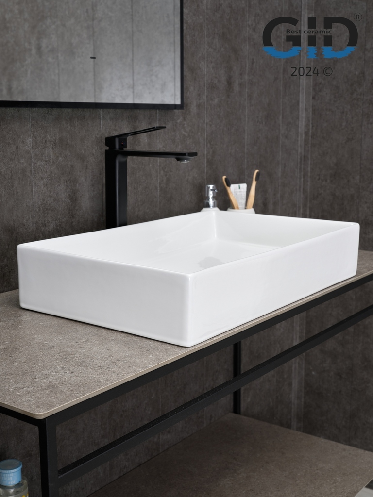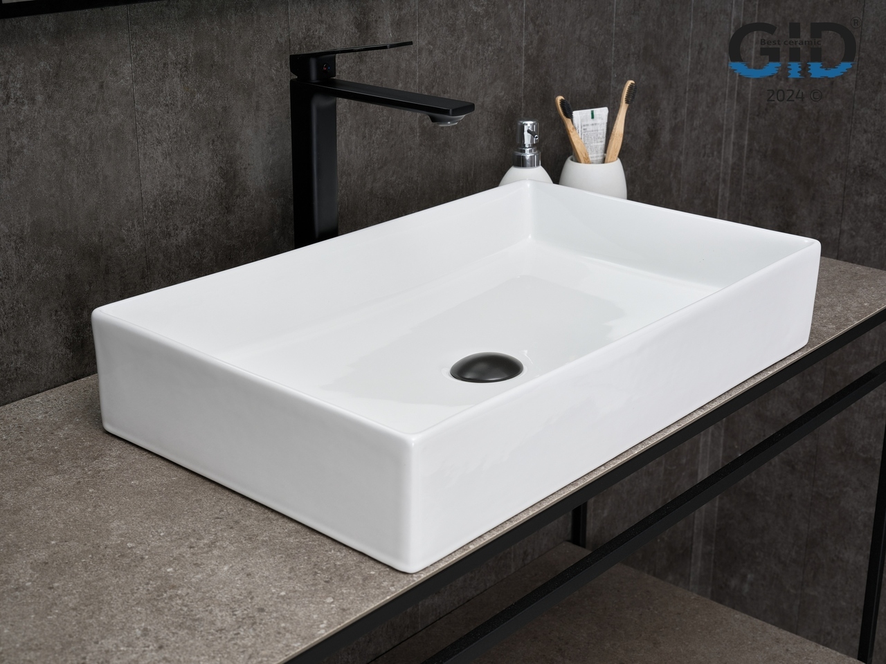 Серия Geometrico с прямоугольной формой: стиль и практичность с испанским качеством и европейскими стандартами. Накладная раковина GiD N9496 — сочетание элегантного дизайна и практичности для вашей ванной комнаты. Изготовлена из мелкопористой керамики с белым глянцевым покрытием, она придаст интерьеру свежесть и утонченность. Прямоугольная форма обеспечивает оптимальное пространство для комфортного использования. Отсутствие отверстия под смеситель подчеркивает минималистичный стиль, а накладной способ монтажа на столешницу облегчает установку и позволяет создать современный облик ванной комнаты.