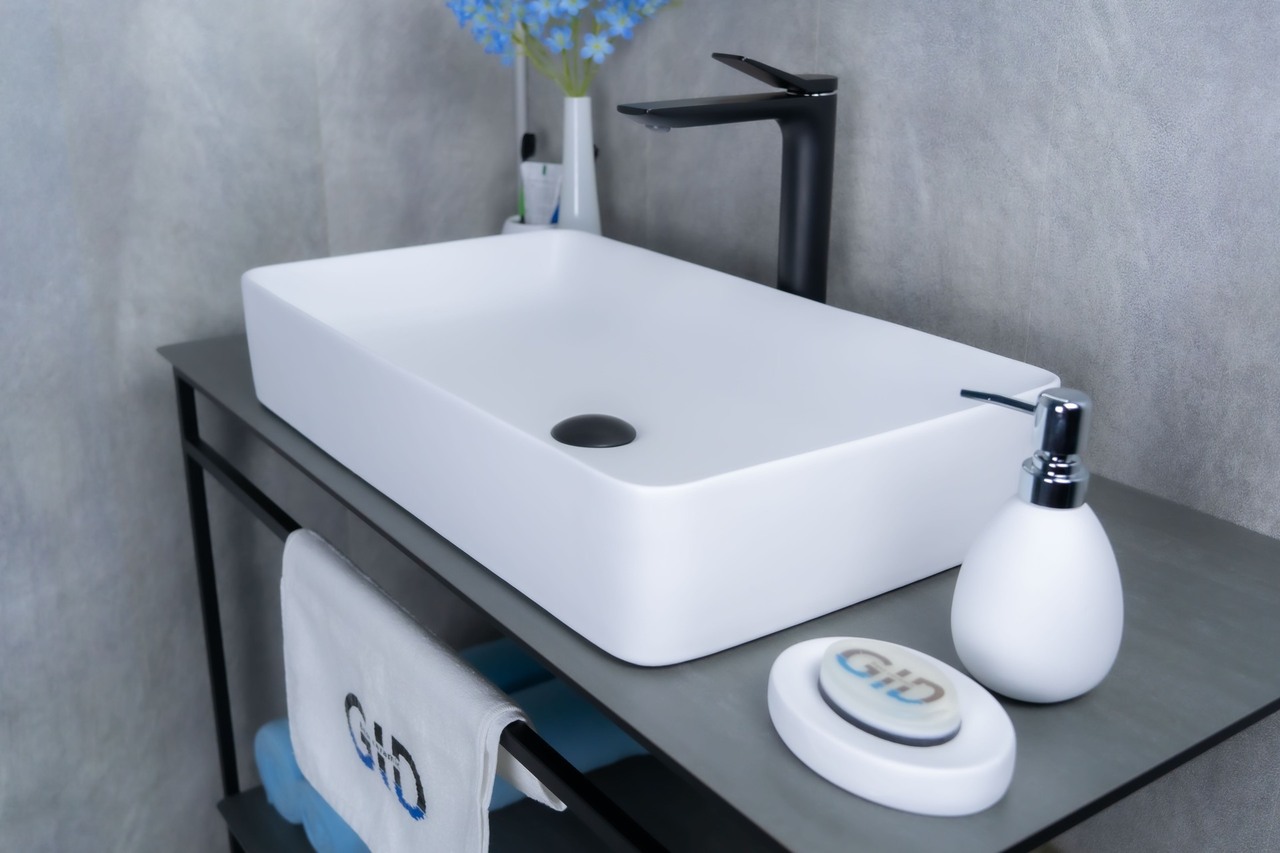 Серия Geometrico с прямоугольной формой: стиль и практичность с испанским качеством и европейскими стандартами. Накладная раковина GiD WM9396 — это изысканная белая матовая модель, созданная для тех, кто ценит стиль и функциональность. Ее прямоугольная форма с утонченными очертаниями придает интерьеру ванной комнаты легкость и гармоничность. Благодаря накладному монтажу раковина оптимально использует пространство столешницы, обеспечивая дополнительное место для аксессуаров. Раковина не имеет отверстия под смеситель и переливной системы, что подчеркивает ее минималистичный дизайн.