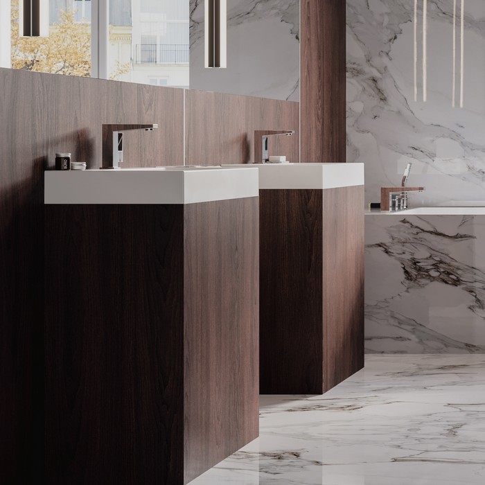 Умывальник изготовлен из инновационного композитного материала, основным компонентом которого является доломитный камень. Технология гарантирует безупречность исполнения каждой детали, исключительную прочность и устойчивость к повреждениям. Глянцевая поверхность умывальника классического белого цвета естественно и мягко отражает падающий на нее свет.