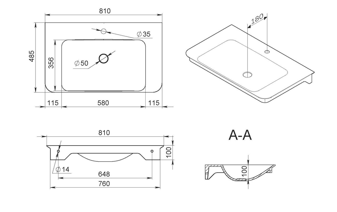 • Раковина мебельная, искусственный мрамор, встроенная в столешницу.