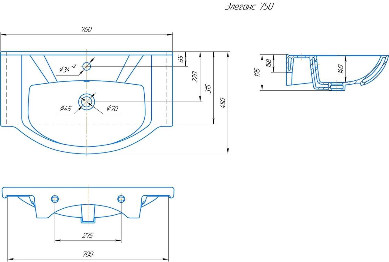 Раковина Kirovit ЭЛЕГАНС 75 отлично впишется в современный дизайн ванной комнаты и гармонично дополнит любой интерьер.