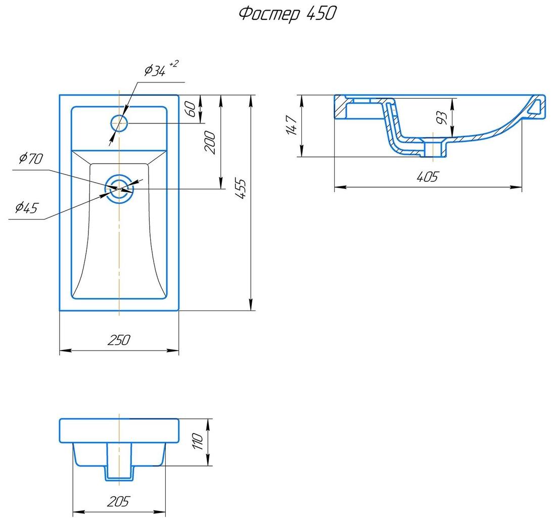 Российская раковина для мебели Kirovit ФОСТЕР 45 - цена 3900 руб. Оформить заказ и купить раковину Kirovit ФОСТЕР 45 в Москве в нашем интернет магазине можно по тел 8 (919) 991-95-00 или добавив товар в корзину.