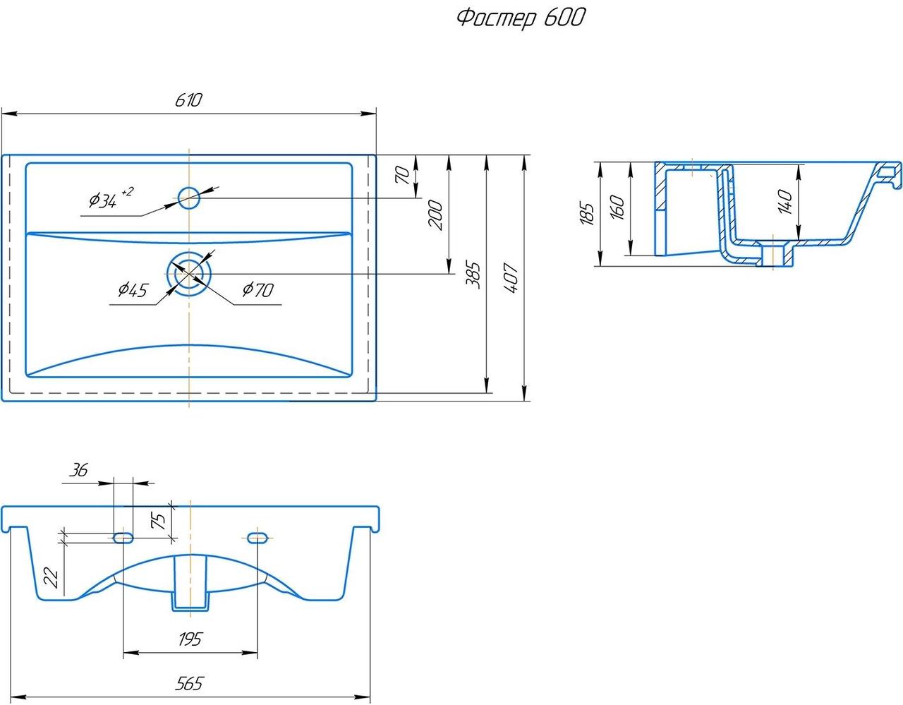Российская раковина для мебели Kirovit ФОСТЕР 60 - цена 4800 руб. Оформить заказ и купить раковину Kirovit ФОСТЕР 60 в Москве в нашем интернет магазине можно по тел 8 (919) 991-95-00 или добавив товар в корзину.