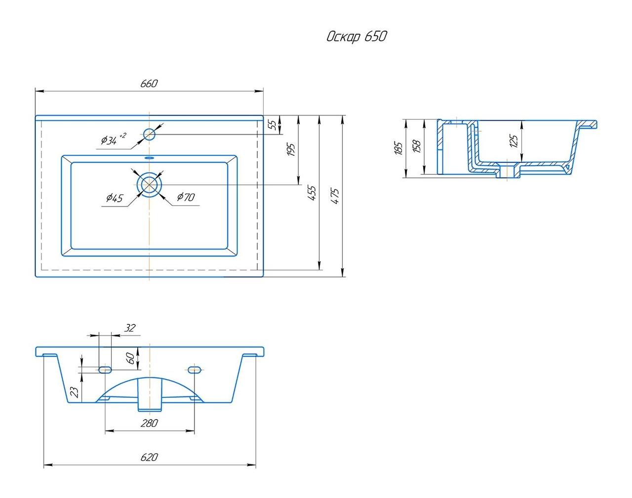 Российская раковина для мебели Kirovit ОСКАР 65 - цена 6300 руб. Оформить заказ и купить раковину Kirovit ОСКАР 65 в Москве в нашем интернет магазине можно по тел 8 (919) 991-95-00 или добавив товар в корзину.