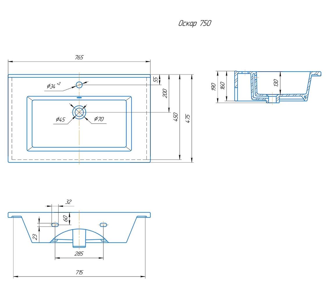 Российская раковина для мебели Kirovit ОСКАР 75 - цена 7500 руб. Оформить заказ и купить раковину Kirovit ОСКАР 75 в Москве в нашем интернет магазине можно по тел 8 (919) 991-95-00 или добавив товар в корзину.
