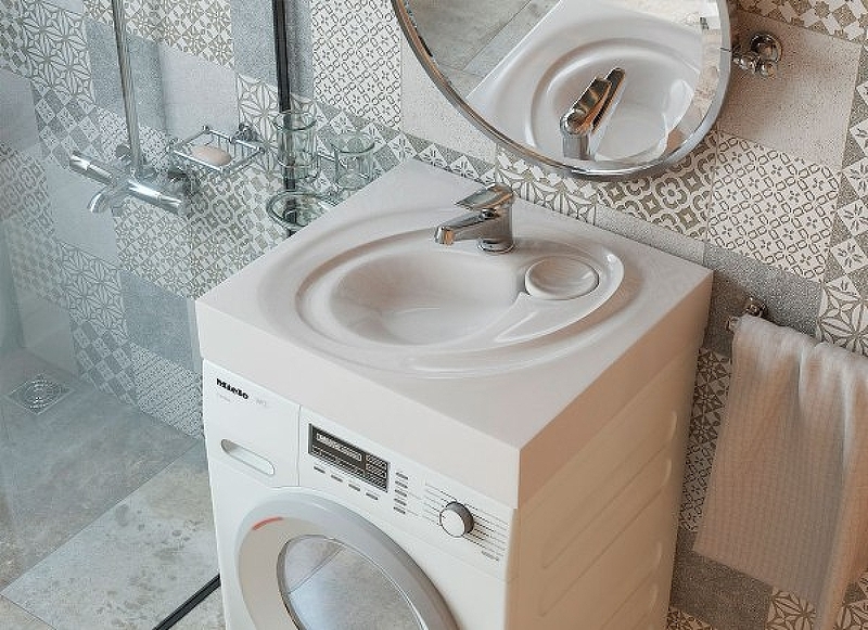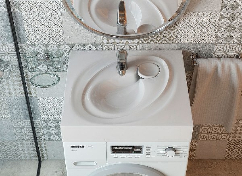 Раковина для установки над стиральной машинкой позволяет компактно распорядиться пространством в ванной комнате и при этом прекрасно украсит интерьер.