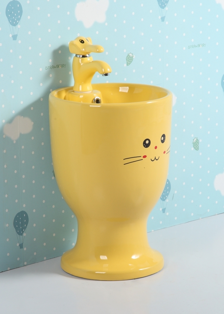 Aventura — яркая коллекция унитазов, раковин и детских смесителей, специально разработанная для детей. Продукция обладает высоким испанским качеством и полностью соответствует европейским стандартам. Напольная раковина GiD Nb193-Y с ярким желтым глянцевым покрытием изготовлена из высококачественной керамики. Благодаря своим компактным размерам идеально подходит для детской ванной комнаты. Модель оснащена отверстием для смесителя, что упрощает установку и использование. Напольная конструкция обеспечивает надежность и устойчивость, что является важным аспектом в детской ванной комнате.