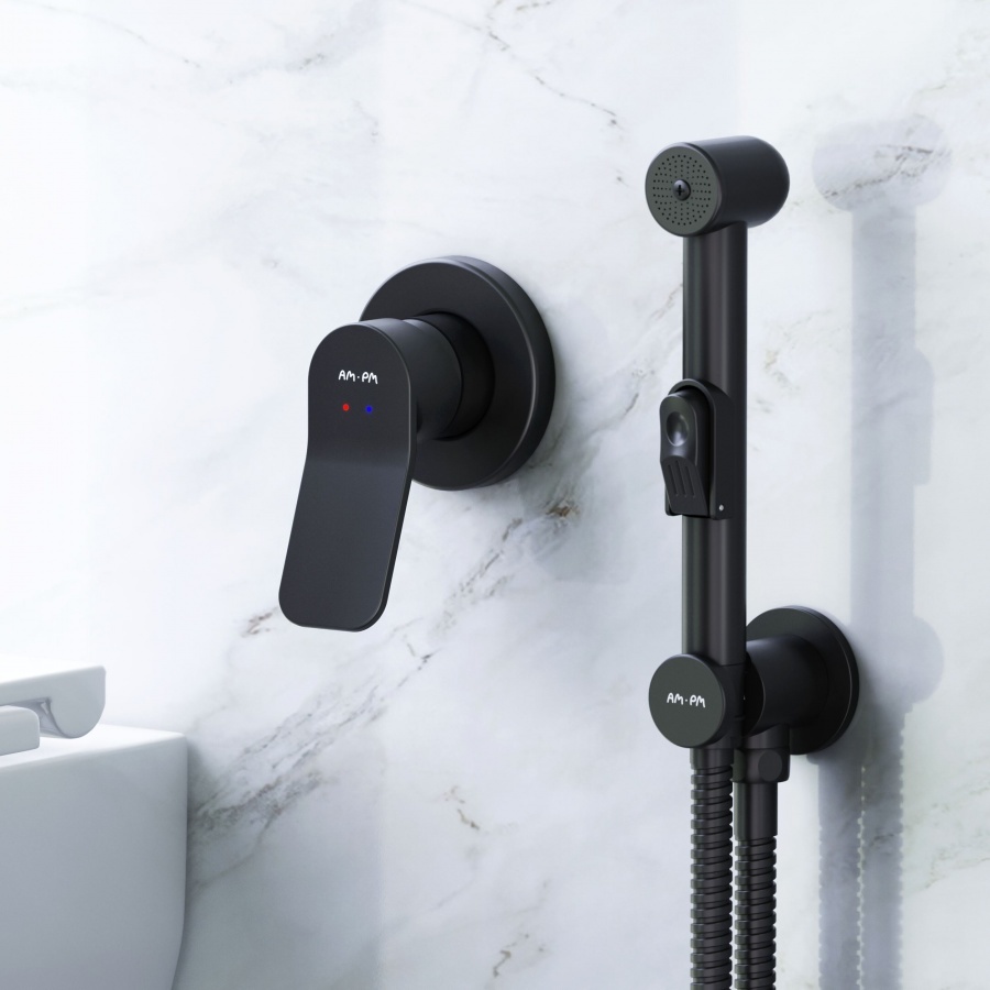 Смеситель с гигиеническим душем Am.Pm X-Joy со смесителем черный - цена 18590 руб. Оформить заказ и купить смеситель Am.Pm X-Joy со смесителем черный в Москве в нашем интернет магазине можно по тел 8 (919) 991-95-00 или добавив товар в корзину.