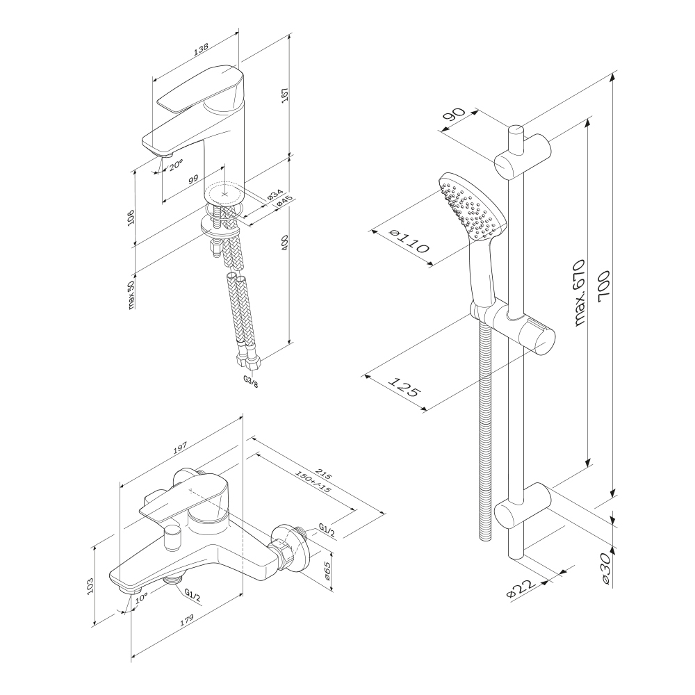 Набор смесителей Gem - это готовое решение для ванной комнаты.3 в 1: набор из двух смесителей и душевого комплекта гармонично дополняют друг друга как функционально так и эстетически.Брутальный и трендовый дизайн смесителей: уникальная шестигранная форма выделяется среди однообразных стандартных смесителей в доступном ценовом сегменте.Эксклюзивная разработка: специально спроектированный для АМ.РМ керамический картридж SoftMotion 35 мм обеспечивает оптимальную регулировку температуры а также позволяет выдерживать любые перепады давления.Переключение режимов «ванна-душ» больше не доставит хлопот: идеальное сочетание пневматического переключения с механическим срабатывает безукоризненно в 100% случаев даже при низком напоре воды.Состав душевого комплекта: ручной душ 120 мм душевая штанга 700 мм с регулируемыми по высоте настенными креплениями настенный держатель с возможностью регулировки угла наклона душевой шланг 1750 мм.3 режима ручного душа: Spray EnerJet Spray +Massage с инновационным переключателем режимов Turning Switch.