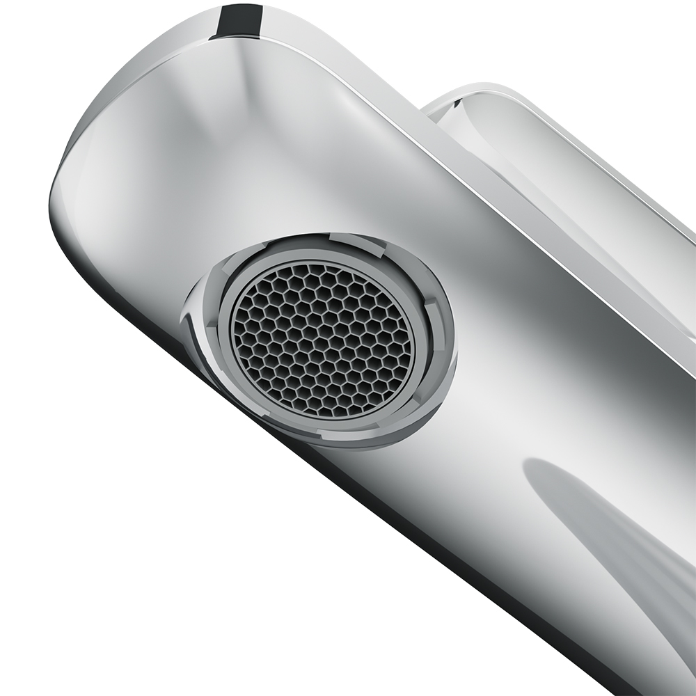 Единство форм всех элементов и тщательно выверенная геометрия смесителя позволяет использовать его с любыми типами и размерами умывальников с максимальным комфортом.