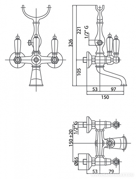 • Оснащение - держатель для душевой лейки, эксцентрики.