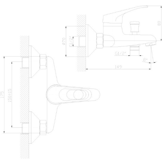 В комплекте: смеситель с эксцентриками, держатель душевой лейки, душевая лейка, душевой шланг.