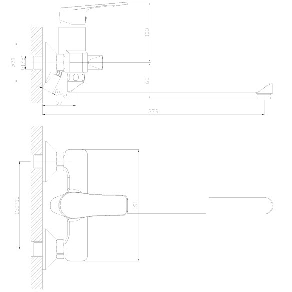 В комплекте: смеситель с эксцентриками, держатель душевой лейки, душевая лейка, душевой шланг.