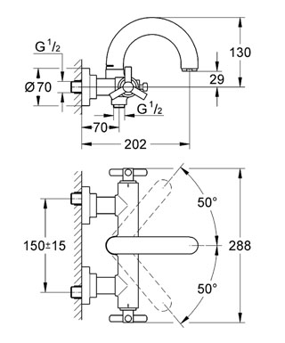 Стандарт подводки: 1/2 дюйма