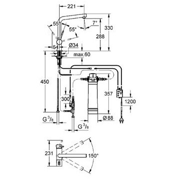 Смеситель для кухни Grohe Blue Pure 31345002 - цена 139521 руб. Оформить заказ и купить смеситель Grohe Blue Pure 31345002 в Москве в нашем интернет магазине можно по тел 8 (919) 991-95-00 или добавив товар в корзину.