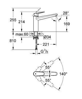 Смеситель для кухни Grohe Eurodisc Cosmopolitan - 33312002