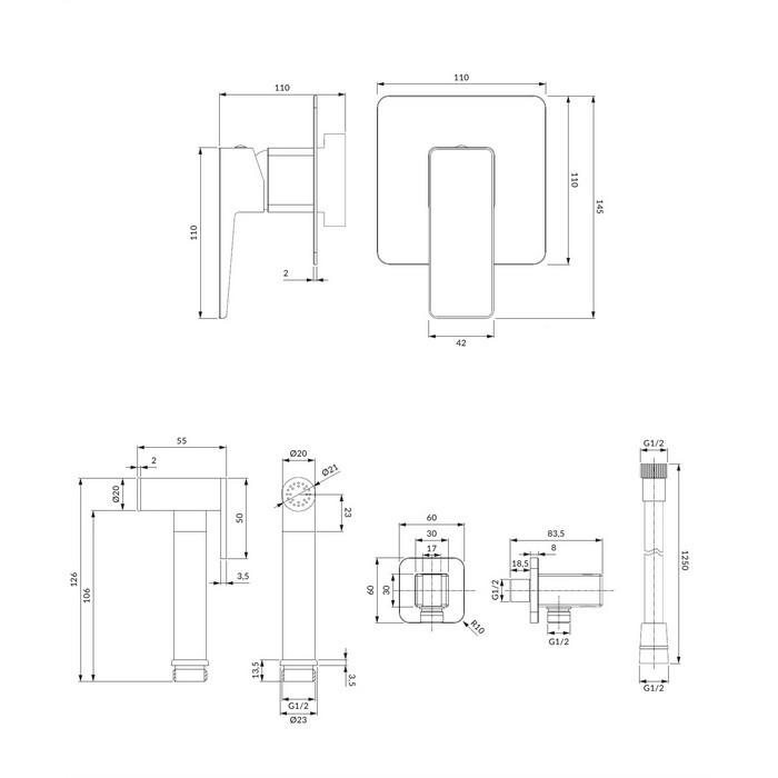 - душевой шланг в стальной оплетке (022-XBL), длина: 125 см;