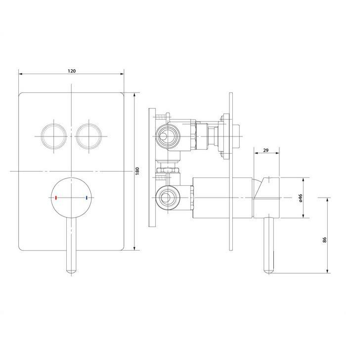 - размеры розетки: 12x18 см; - минимальная глубина для установки: 8,5 см; - два входа (для горячей и холодной воды): 1/2”; - два выхода смешанной воды: 1/2”; - оборудованный фильтрами и обратными клапанами; - элемент скрытого монтажа в комплекте.