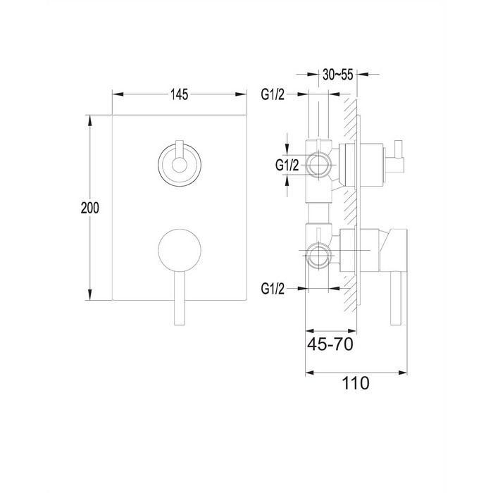 - размеры розетки: 14,5x20 см; - минимальная глубина для установки: 4,5 см; - два входа (для горячей и холодной воды): 1/2”; - три выхода смешанной воды: 1/2”; - элемент скрытого монтажа в комплекте.