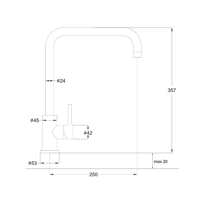 - поворотный излив; - длина излива: 21,5 см; - высота излива воды: 27,5 см; - полная высота смесителя: 35,7 см; - покрытие: INOX.