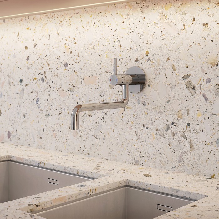 - поворотный излив; - размеры розетки: ø9 см; - длина излива: 29 см; - минимальная глубина для установки: 4,5 см; - элемент скрытого монтажа в комплекте.