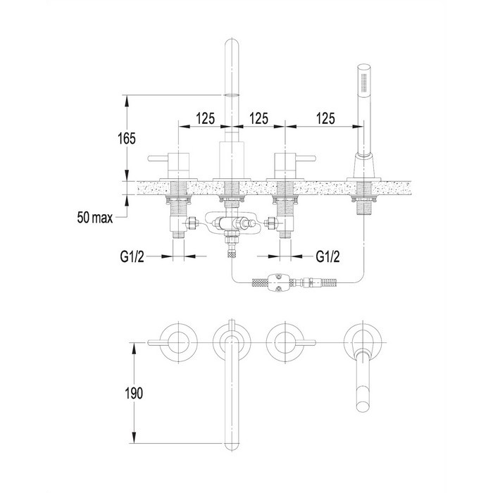 - длина излива: 19 см; - высота излива: 16,5 см; - латунная душевая лейка с 1-ой функцией; - душевой шланг в латунной оплетке, длина: 150 см; - система SmartFix (возможность заменить душевой шланг, не прибегая к демонтажу ванны).