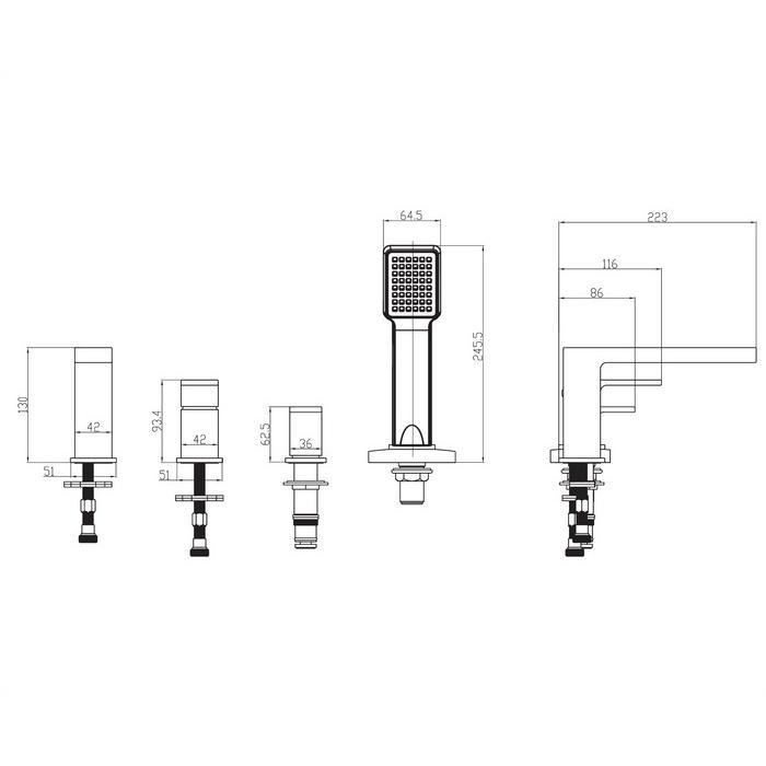 - длина излива: 17,5 см; - высота излива: 10,5 см; - лейка душевая с 1-ой функцией; - душевой шланг в стальной оплетке, длина: 150 см; - система SmartFix (возможность заменить душевой шланг, не прибегая к демонтажу ванны).
