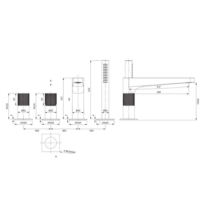 - длина излива: 22 см; - высота излива: 13,7 см; - латунная душевая лейка с 1-ой функцией; - душевой шланг в стальной оплетке, длина: 150 см; - система SmartFix (возможность заменить душевой шланг, не прибегая к демонтажу ванны).