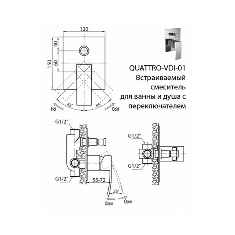 Смеситель для душа Cezares QUATTRO-C-VDI-01 - цена 4690 руб. Оформить заказ и купить смеситель Cezares QUATTRO-C-VDI-01 в Москве в нашем интернет магазине можно по тел 8 (919) 991-95-00 или добавив товар в корзину.