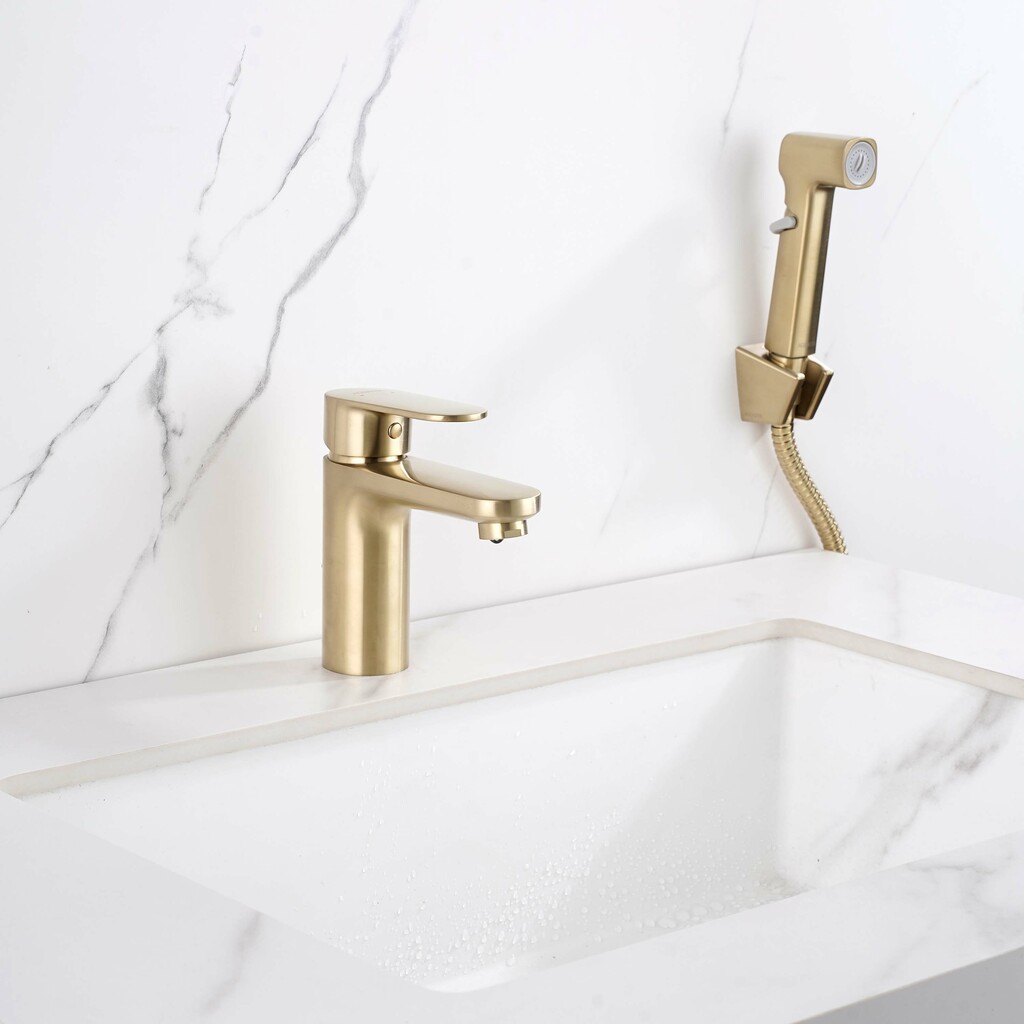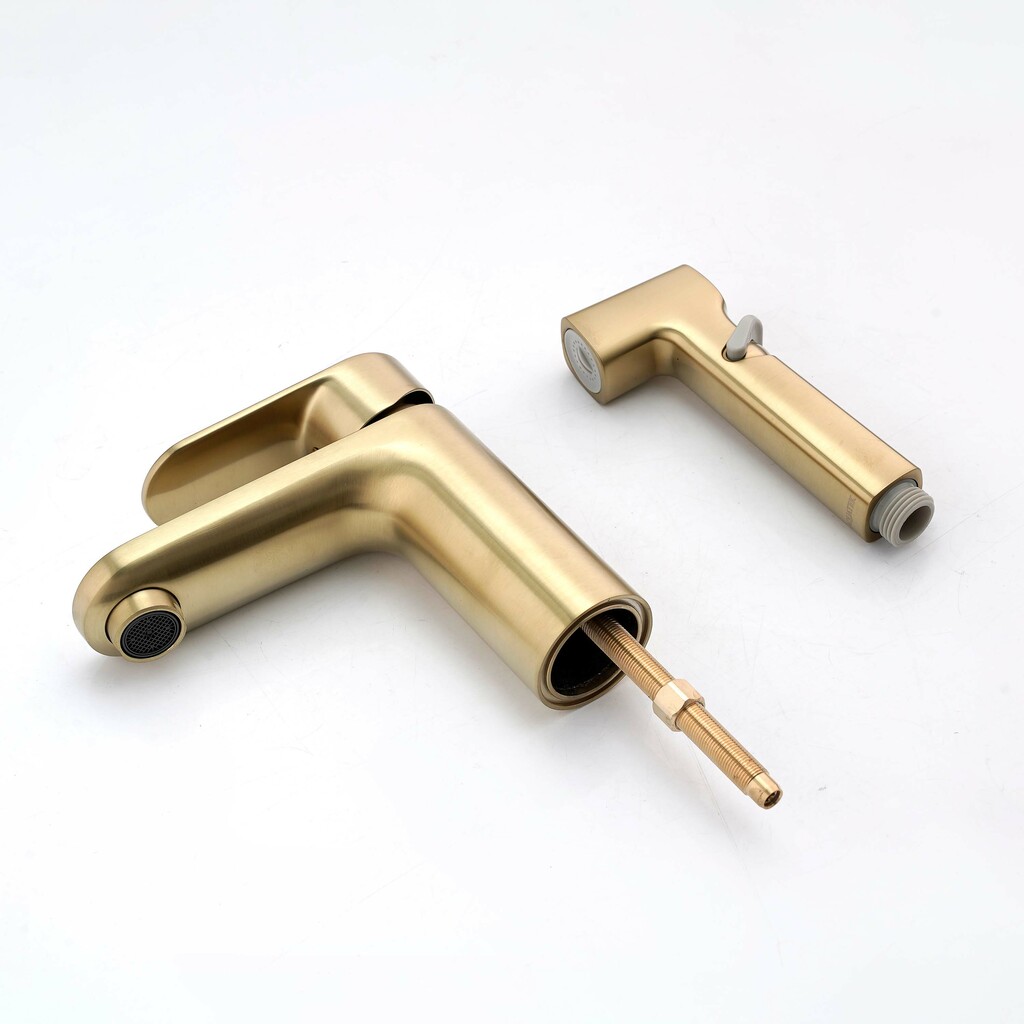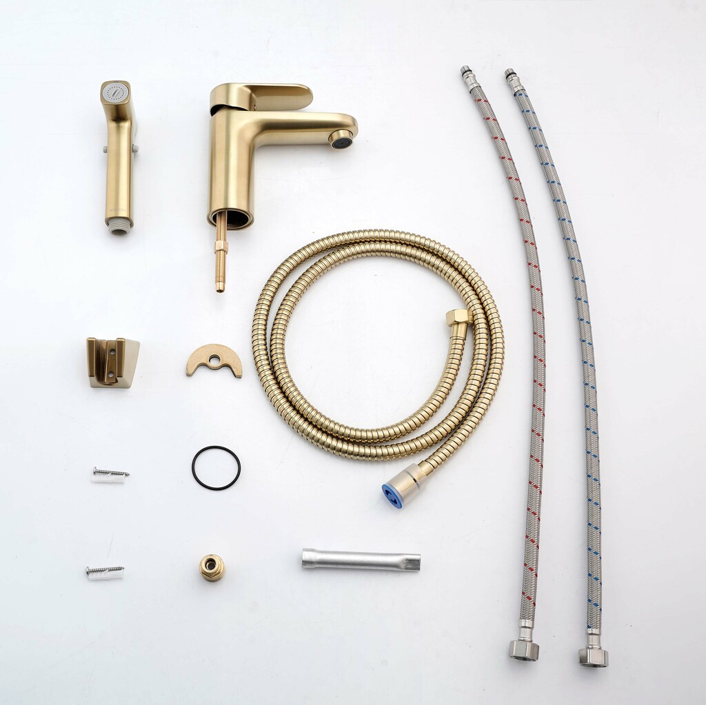 Смеситель Aquatek AQ1812BG НИКА смеситель для раковины 90 без донного клапана с гигиеническим ручным душем, шлиф.золото - цена 14609 руб. Оформить заказ и купить смеситель Aquatek AQ1812BG НИКА смеситель для раковины 90 без донного клапана с гигиеническим ручным душем, шлиф.золото в Москве в нашем интернет магазине можно по тел 8 (919) 991-95-00 или добавив товар в корзину.