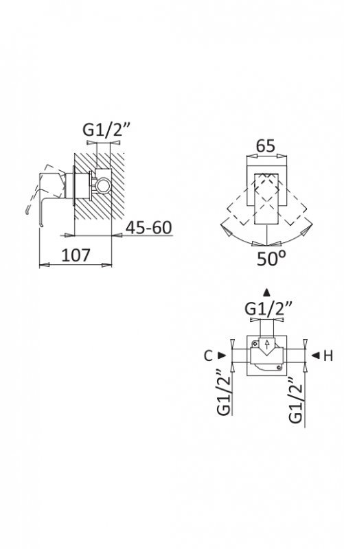 Комплектация: встраиваемый однорычажный смеситель для душа, со скрытой монтажной частью.