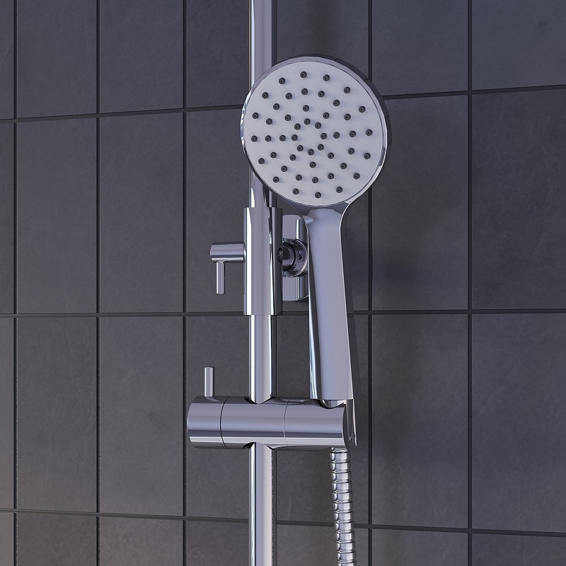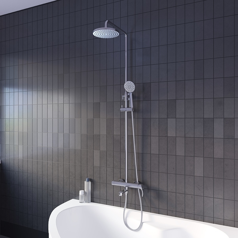 Смеситель для ванны Joker с верхним душем обращает на себя внимание необычным дизайном, который практически не имеет аналогов, и функционалом. Утолщенная ручка оригинальной формы удобна для захвата и намыленной рукой. Основной дивертор на корпусе сбоку переключает воду с верхней лейки на излив и имеет режим «пауза» – поставив поток воды на паузу, можно сэкономить воду, не изменяя напор или температуру. Дополнительный дивертор спрятан в складном изливе – его поворот под корпус переключает воду на ручную лейку. Стойка удобно регулируется по высоте.