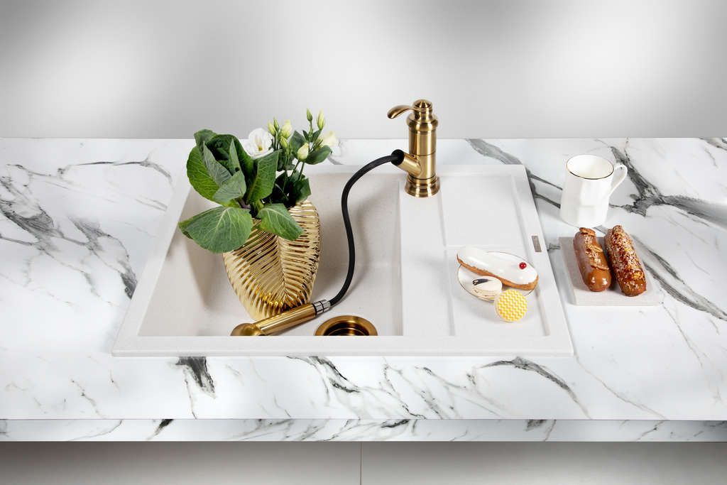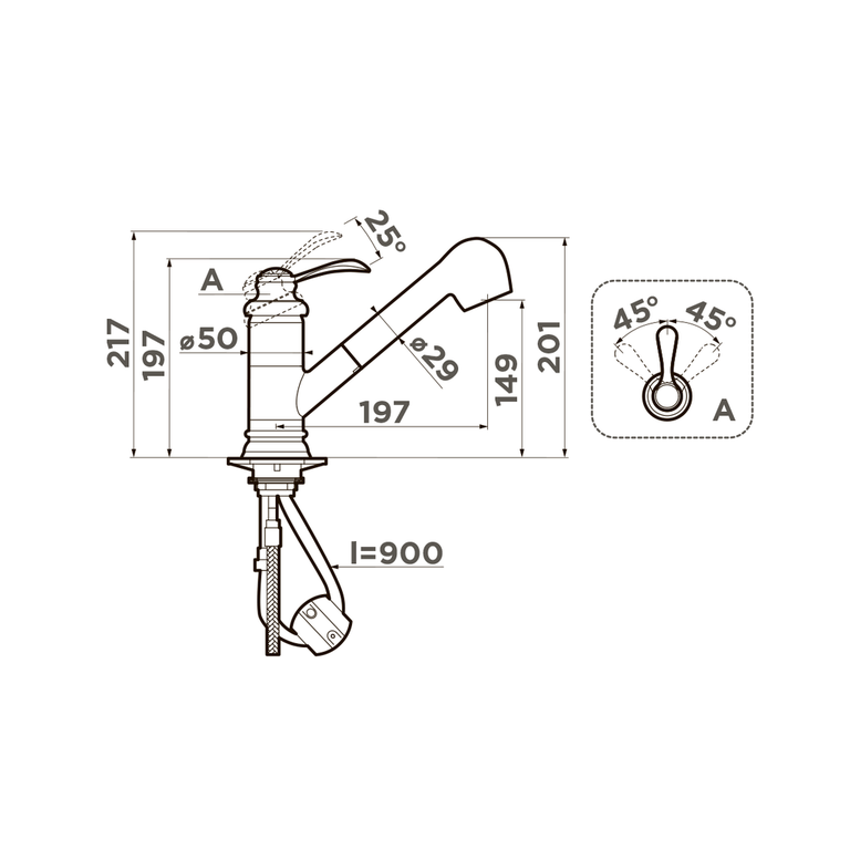 Классический дизайн и невероятно удобная конструкция смесителя, сочетающая в себе вытяжной шланг и функцию переключения воды на 2 режима: струя и душ;