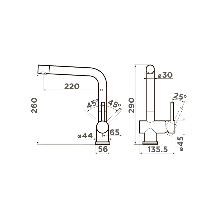 Высокий излив обеспечивает максимально удобное использование смесителя;