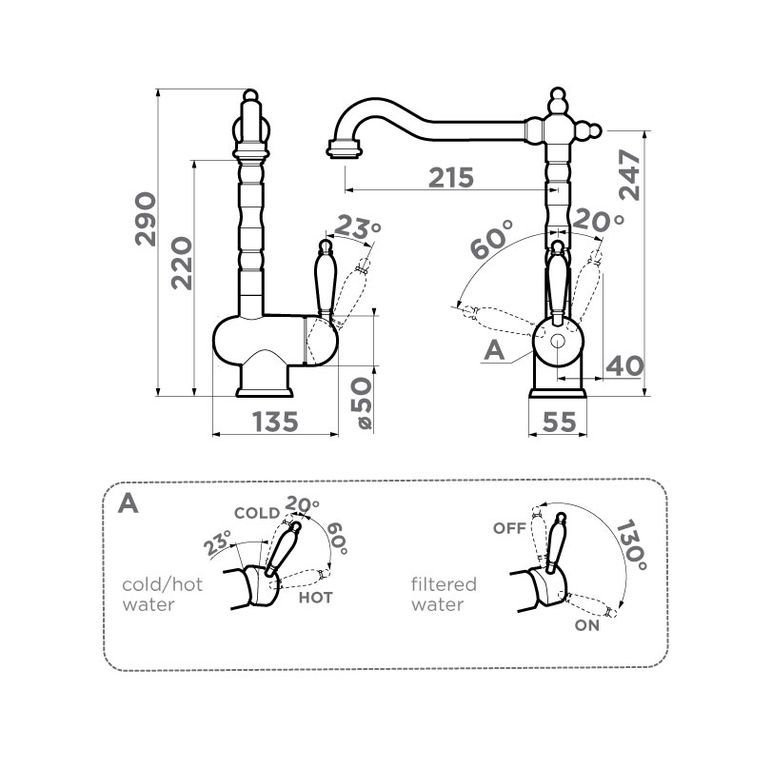 Технология PURE LIFE: подключение фильтра для очистки воды. Фильтрованная вода подается по отдельной трубке и не смешивается с водопроводной водой;