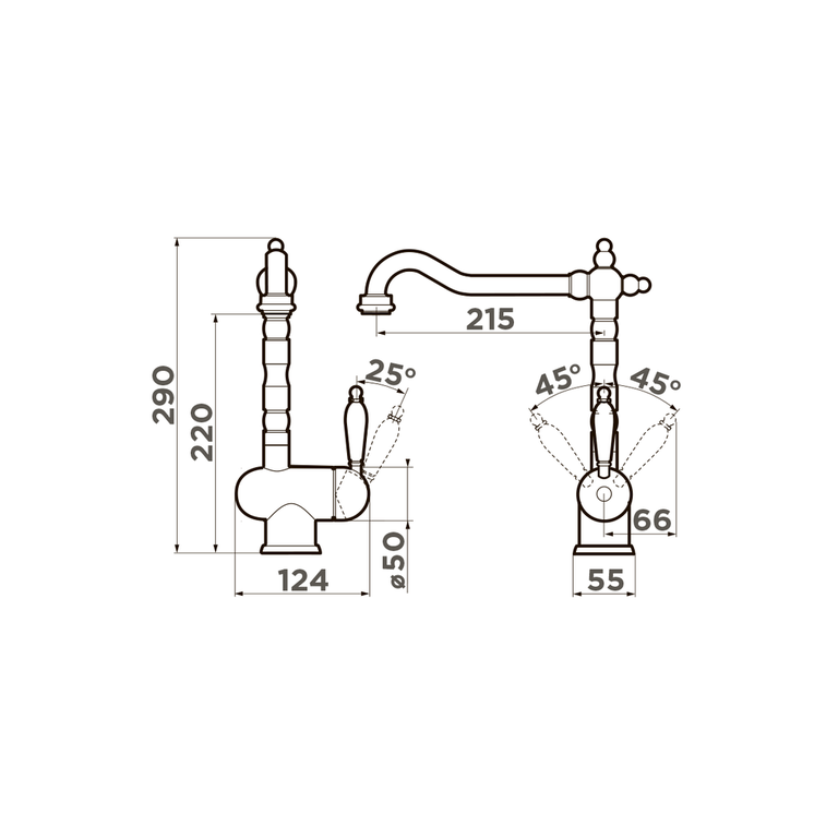 Классический дизайн и удобство использования благодаря высокому изливу;
